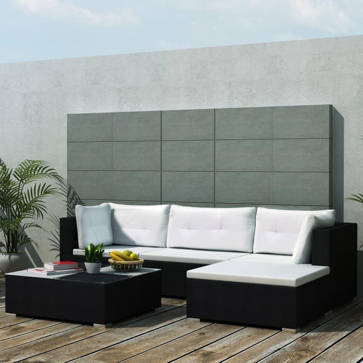 Salon de jardin 5 pcs avec coussins resine tressee noir