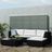 La livraison comprend 2 canapes d'angle, 1 canape central, 1 repose-pied, 1 table a the, 4 coussins de siege et 5 coussins de dossier.
