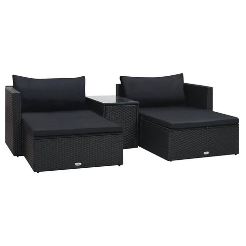 Salon de jardin 5 pcs avec coussins resine tressee noir