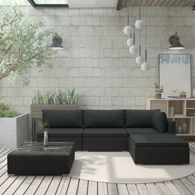 Salon de jardin 5 pcs avec coussins resine tressee noir