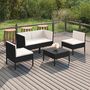 Salon de jardin 5 pcs avec coussins resine tressee noir