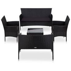 Salon de jardin 5 pcs avec coussins resine tressee noir