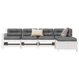 Salon de jardin 5 pcs blanc bois massif de pin