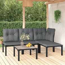 Salon de jardin 5 pcs noir et gris resine tressee