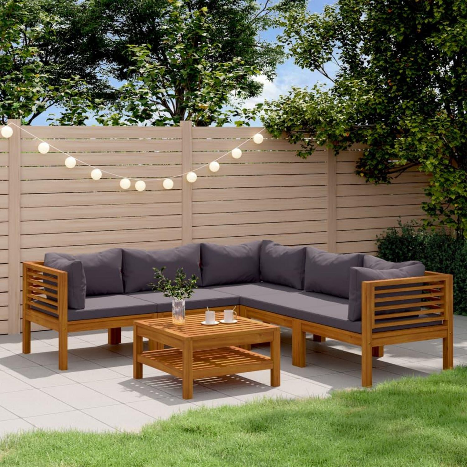 Salon de jardin 6 pcs avec coussin Bois d'acacia solide