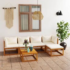 Salon de jardin 6 pcs avec coussin Creme Bois d'acacia solide