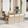 Salon de jardin 6 pcs avec coussins beige resine tressee acacia