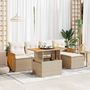 Salon de jardin 6 pcs avec coussins beige resine tressee acacia
