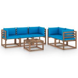 Le salon de jardin est en bois de pin impregne, ce qui le rend durable et resistant aux intemperies. Cet ensemble de meubles a une construction solide et necessite peu d'entretien. Grace a la tapisserie 100 % polyester et au rembourrage epais, les coussins inclus sont doux et confortables.