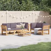 Salon de jardin 6 pcs avec coussins bois d'acacia solide