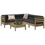 Salon de jardin 6 pcs avec coussins bois de pin impregne