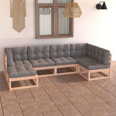 Salon de jardin 6 pcs avec coussins Bois de pin massif