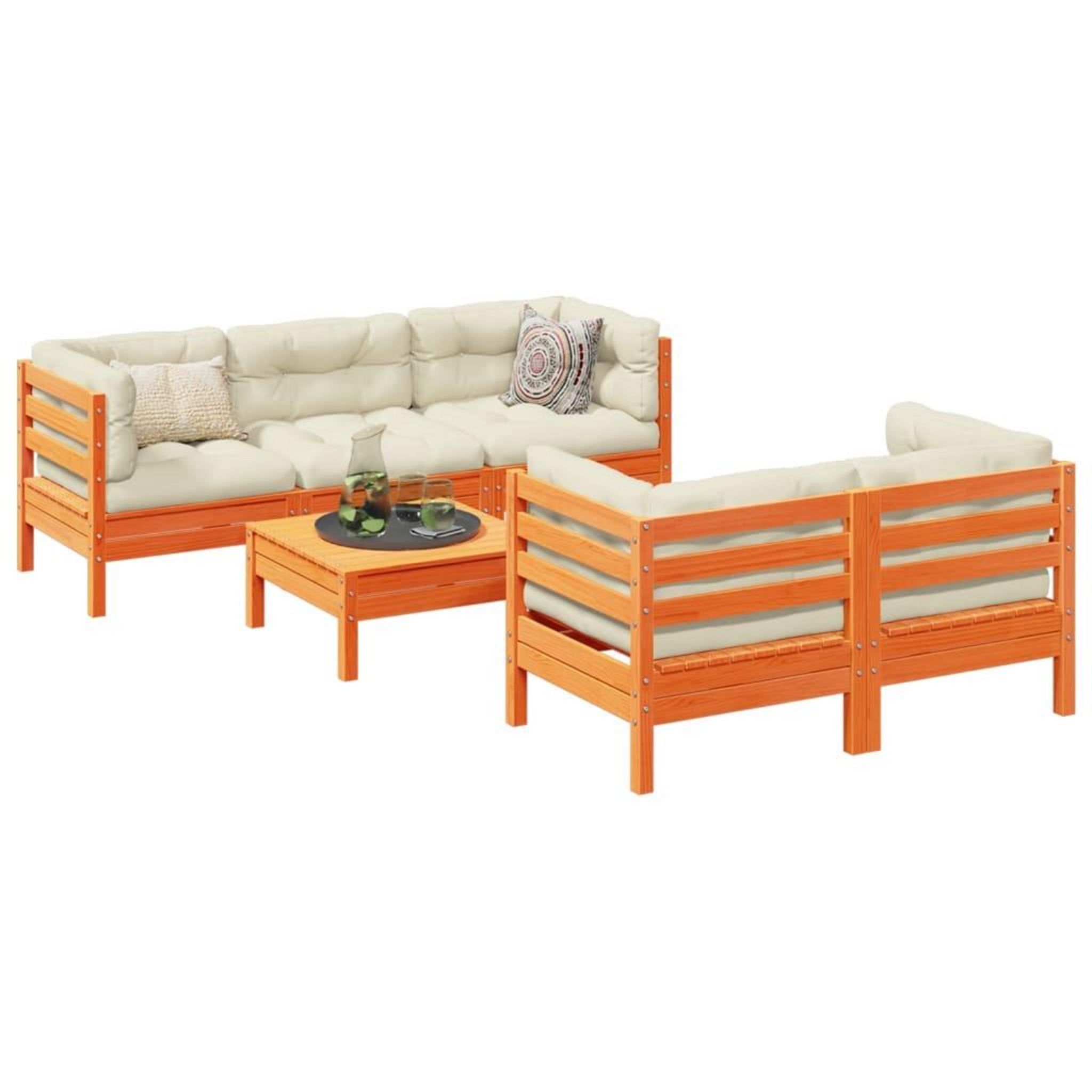 Salon de jardin 6 pcs avec coussins cire marron bois pin massif