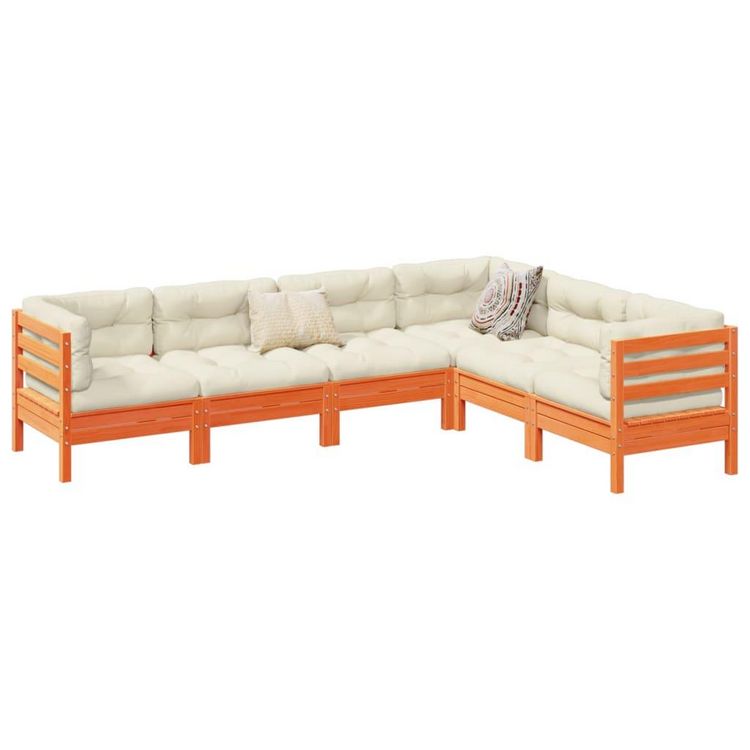 Salon de jardin 6 pcs avec coussins cire marron bois pin massif