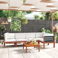 Salon de jardin 6 pcs avec coussins Creme Bois d'acacia solide