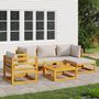 Salon de jardin 6 pcs avec coussins gris clair bois massif