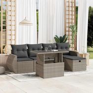 Salon de jardin 6 pcs avec coussins gris clair resine tressee