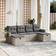 Salon de jardin 6 pcs avec coussins gris clair resine tressee