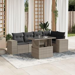 Salon de jardin 6 pcs avec coussins gris clair resine tressee