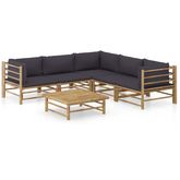 Salon de jardin 6 pcs avec coussins gris fonce bambou