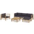 Salon de jardin 6 pcs avec coussins gris fonce bambou