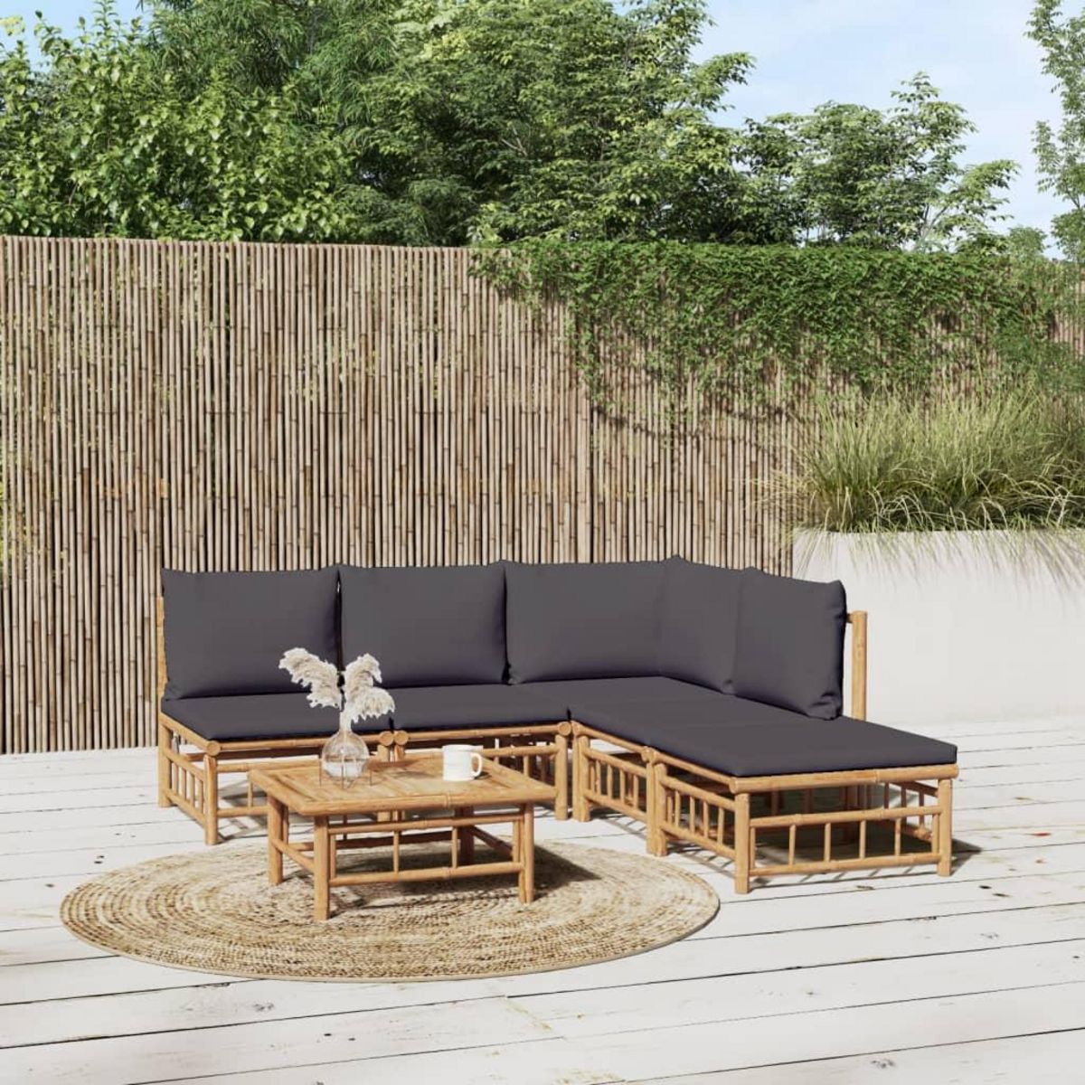 Salon de jardin 6 pcs avec coussins gris fonce bambou