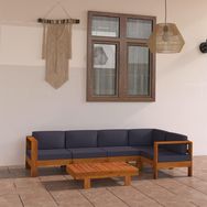 Salon de jardin 6 pcs avec coussins gris fonce Bois d'acacia