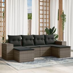 Salon de jardin 6 pcs avec coussins gris resine tressee
