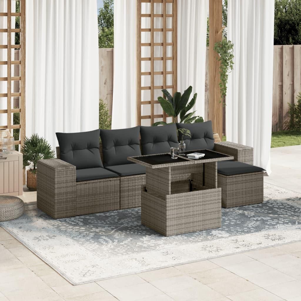 Salon de jardin 6 pcs avec coussins gris resine tressee