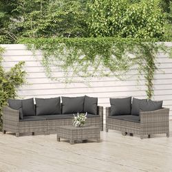 Salon de jardin 6 pcs avec coussins Gris Resine tressee
