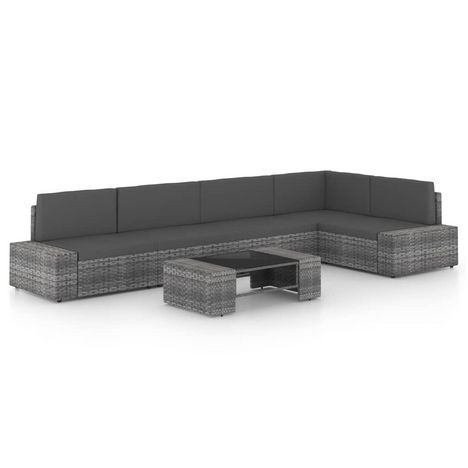 Salon de jardin 6 pcs avec coussins Gris Resine tressee