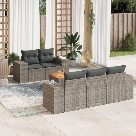 Salon de jardin 6 pcs avec coussins gris resine tressee