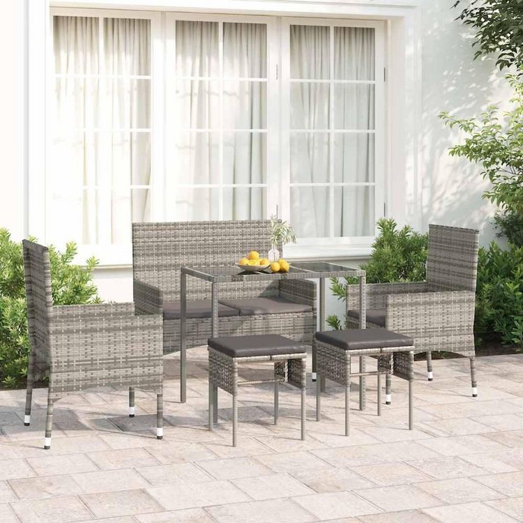 Salon de jardin 6 pcs avec coussins Gris Resine tressee