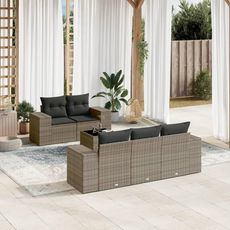 Salon de jardin 6 pcs avec coussins gris resine tressee