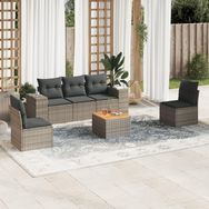 Salon de jardin 6 pcs avec coussins gris resine tressee
