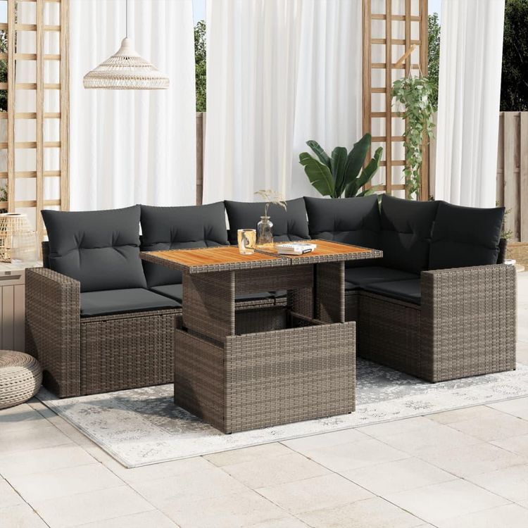 Salon de jardin 6 pcs avec coussins gris resine tressee