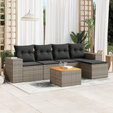 Salon de jardin 6 pcs avec coussins gris resine tressee