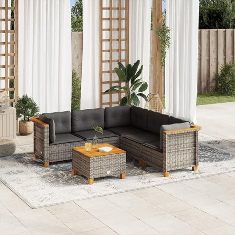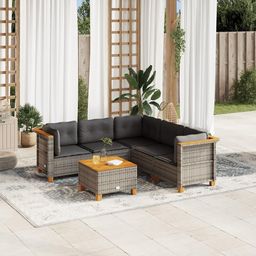 Salon de jardin 6 pcs avec coussins gris resine tressee