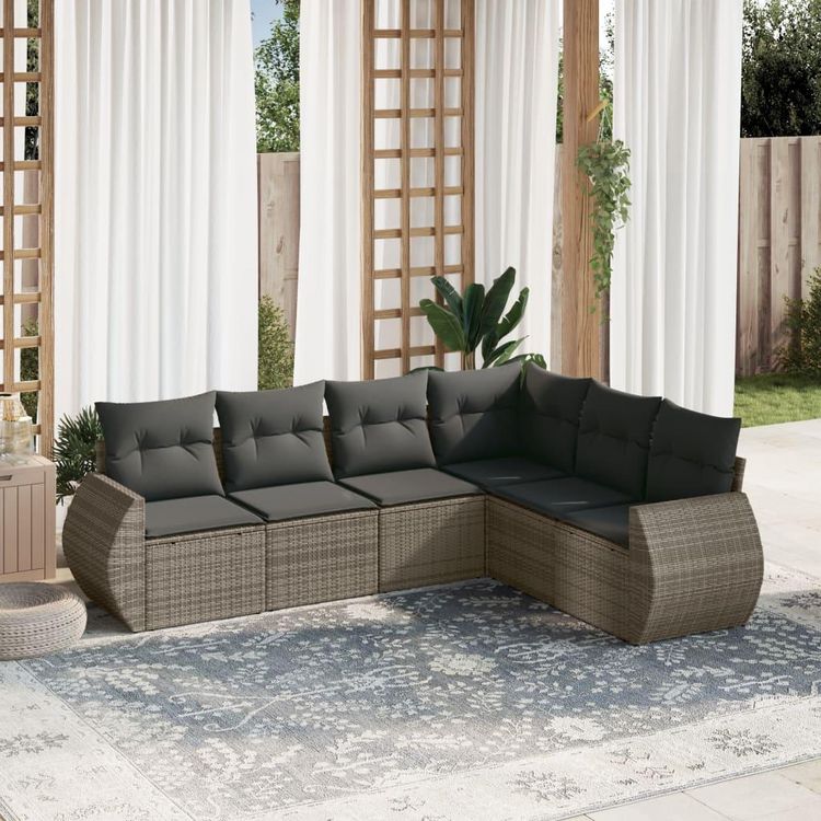 Salon de jardin 6 pcs avec coussins gris resine tressee
