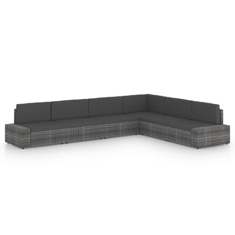 Salon de jardin 6 pcs avec coussins Gris Resine tressee