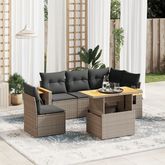 Salon de jardin 6 pcs avec coussins gris resine tressee
