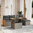 Salon de jardin 6 pcs avec coussins gris resine tressee