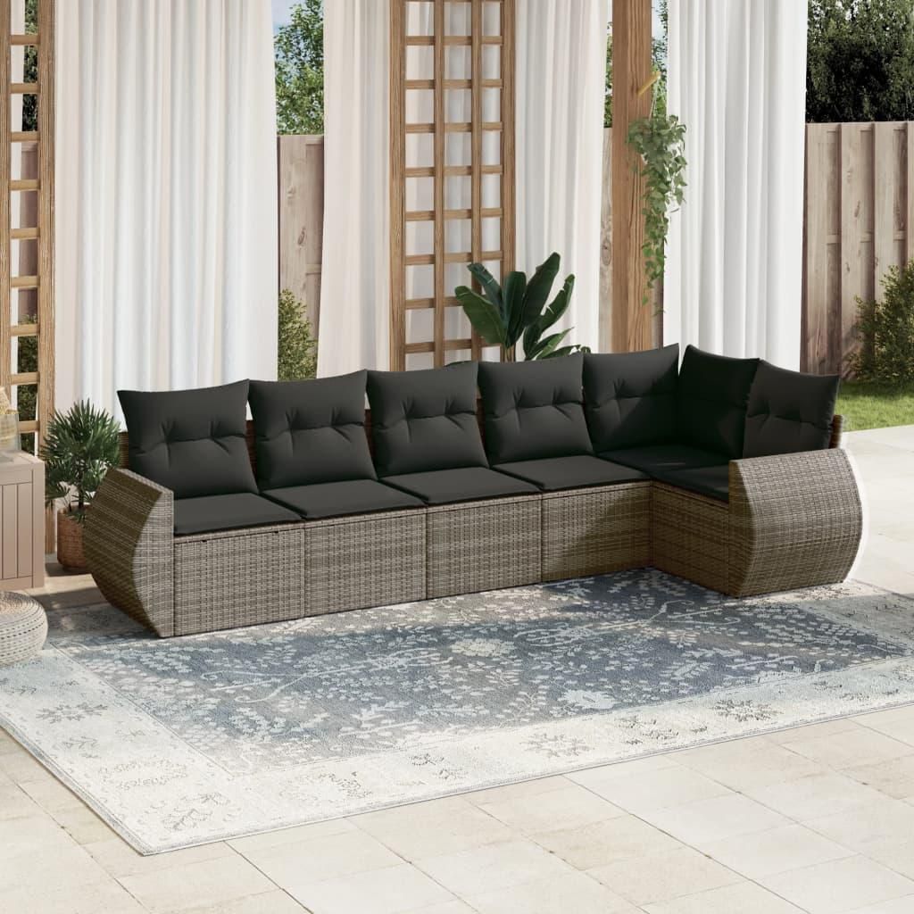 Salon de jardin 6 pcs avec coussins gris resine tressee