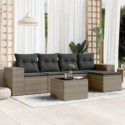 Salon de jardin 6 pcs avec coussins gris resine tressee