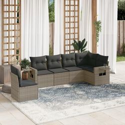 Salon de jardin 6 pcs avec coussins gris resine tressee