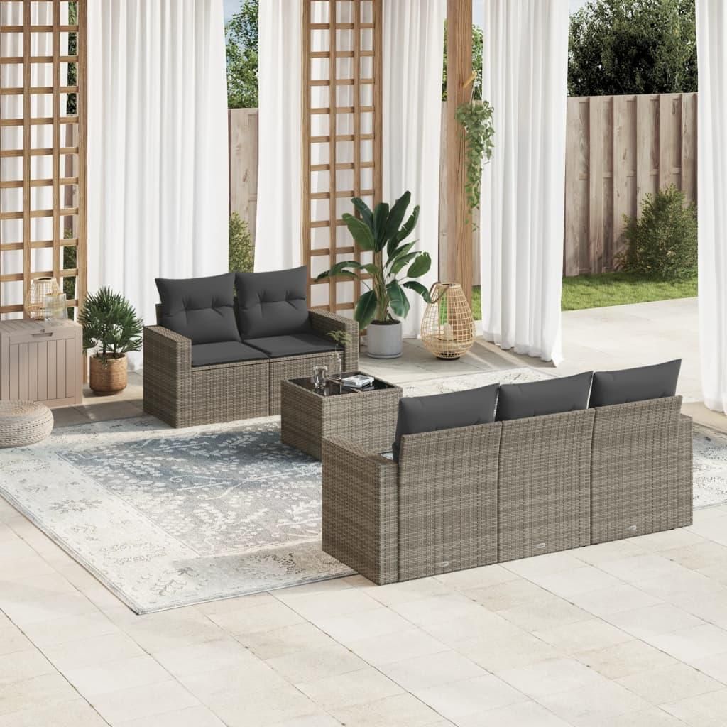Salon de jardin 6 pcs avec coussins gris resine tressee