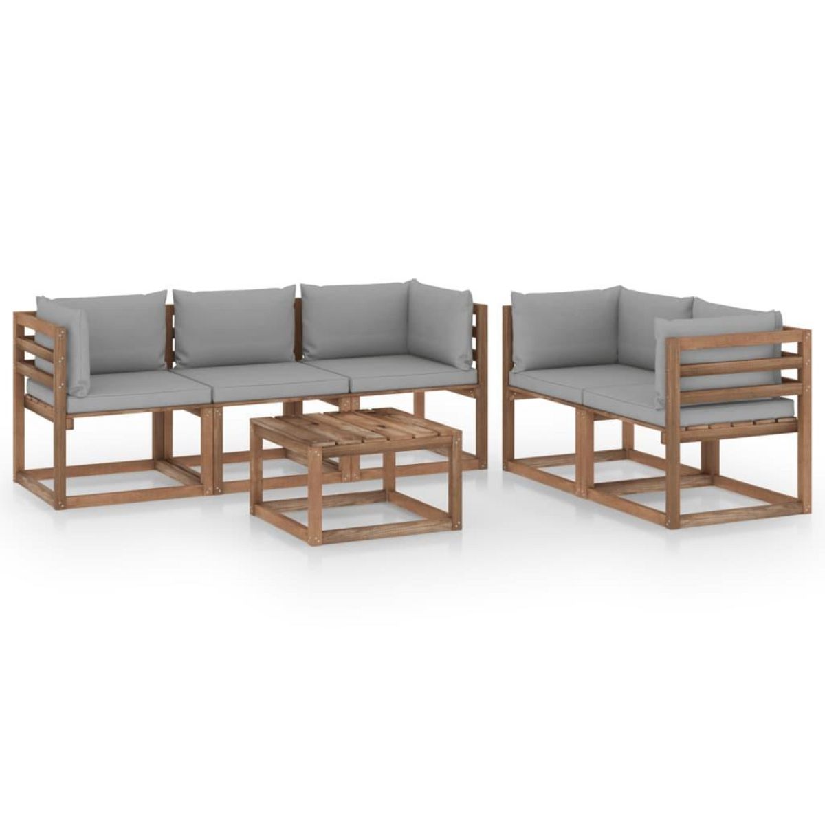 Salon de jardin 6 pcs avec coussins gris