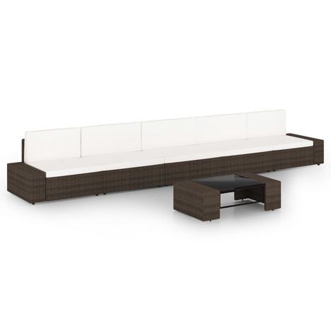 Salon de jardin 6 pcs avec coussins Marron Resine tressee