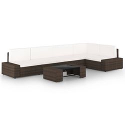 Salon de jardin 6 pcs avec coussins Marron Resine tressee