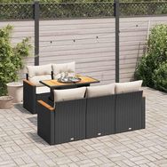 Salon de jardin 6 pcs avec coussins noir resine tressee acacia